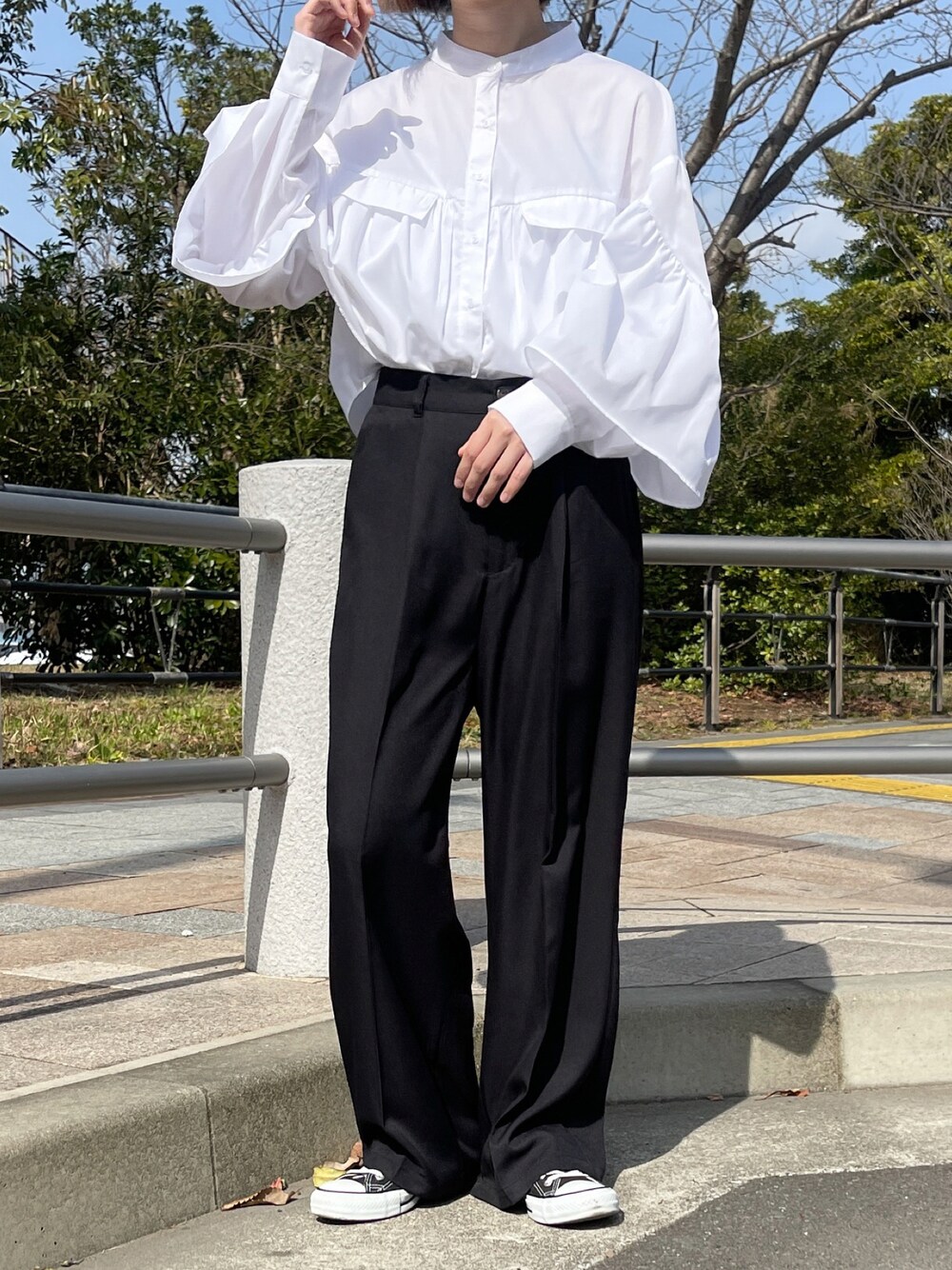 ご覧いただきありがとうございます🌟 シャツ合わせでモノトーンコーデに!