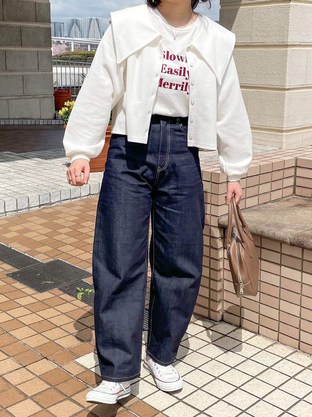 pairpairのカーディガン/ボレロ「ショート丈ビッグカラーカーディガン」を使ったコーディネート
