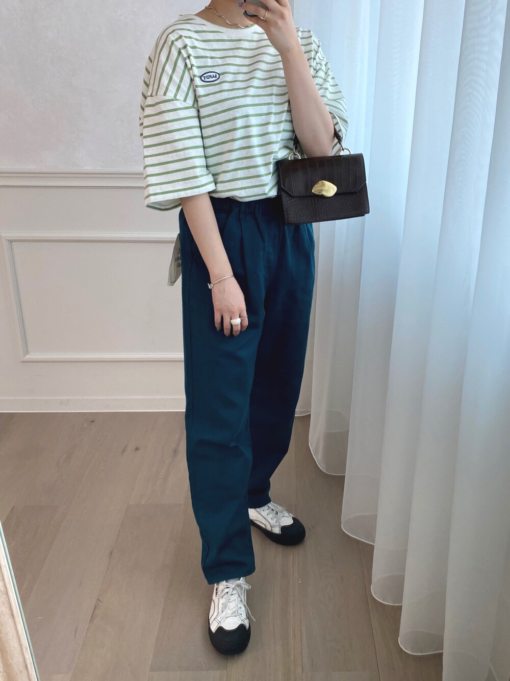 ご覧頂きありがとうございます‼️ グリーンボーダーコーデ🌟