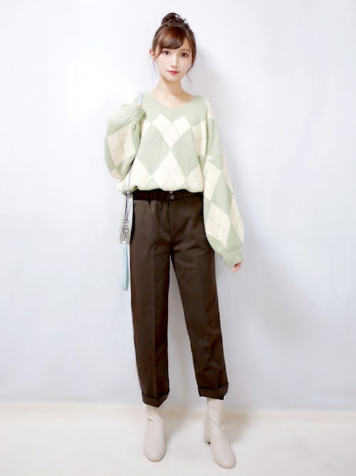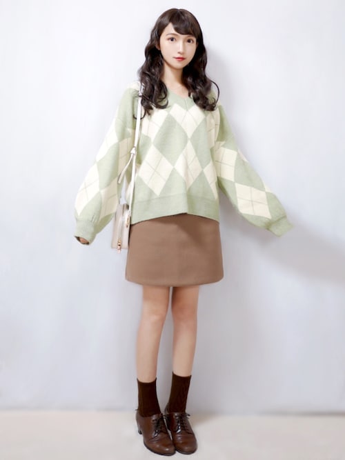 アーガイルVネックニットと 花柄プリーツスカートのコーデ🌼 ぜひ参考にしてみてください💓
