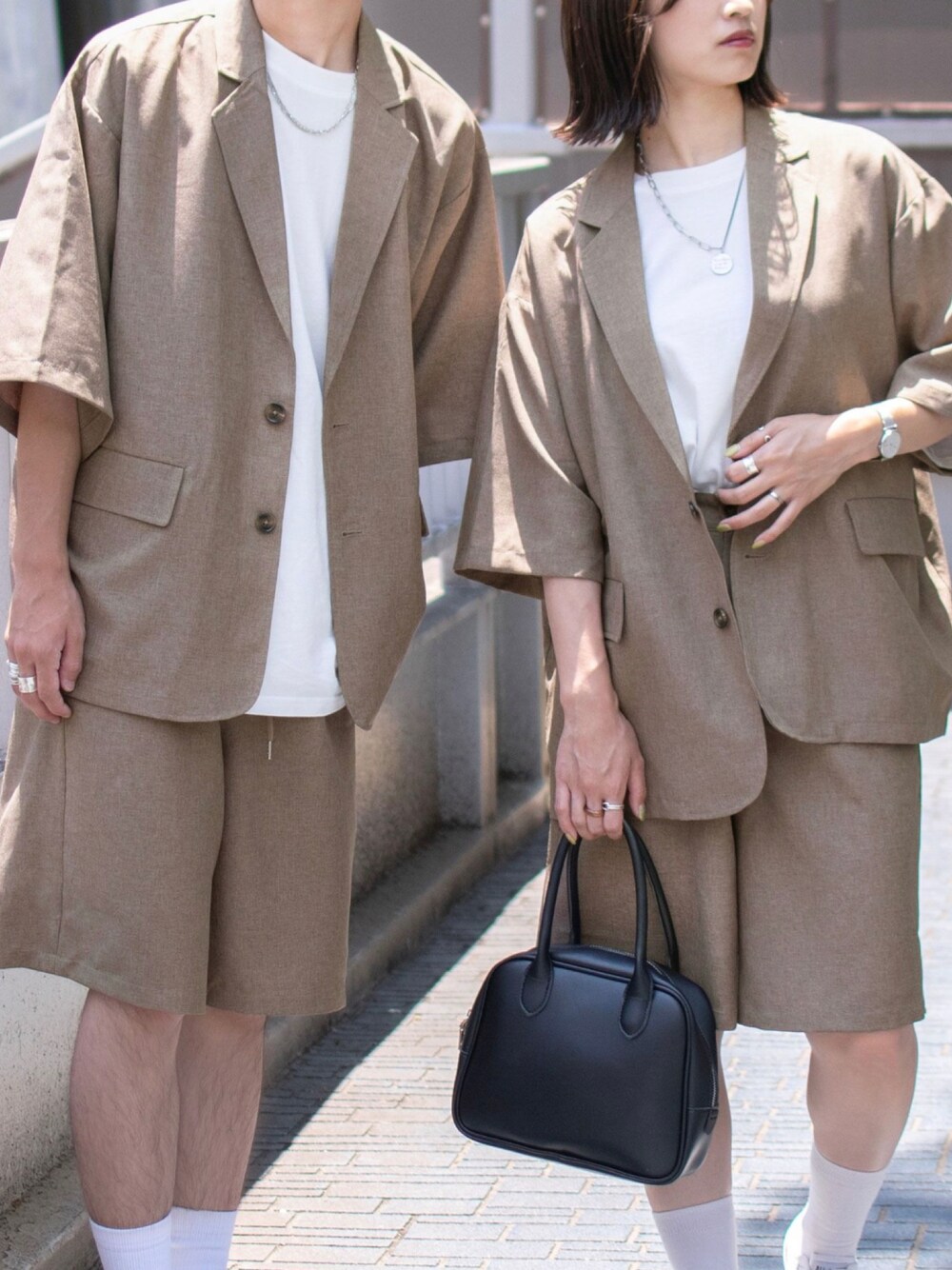 大人気のテックリネンセットアップが夏バージョンで登場! リネン見えする素材なので上品さもあり 普段ハーフパンツを穿かない方も挑戦しやすい1枚! カジュアルになりすぎず綺麗めコーデにもおすすめです。