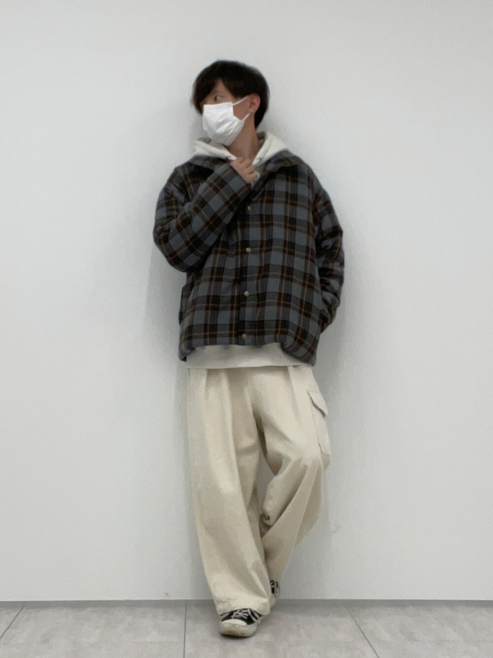 ご覧いただきありがとうございます🌄 チェック中綿ブルゾンを使ったコーデ