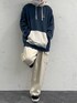 ご覧くださりありがとうございます‼️ フード配色パーカーを使ったコーデ