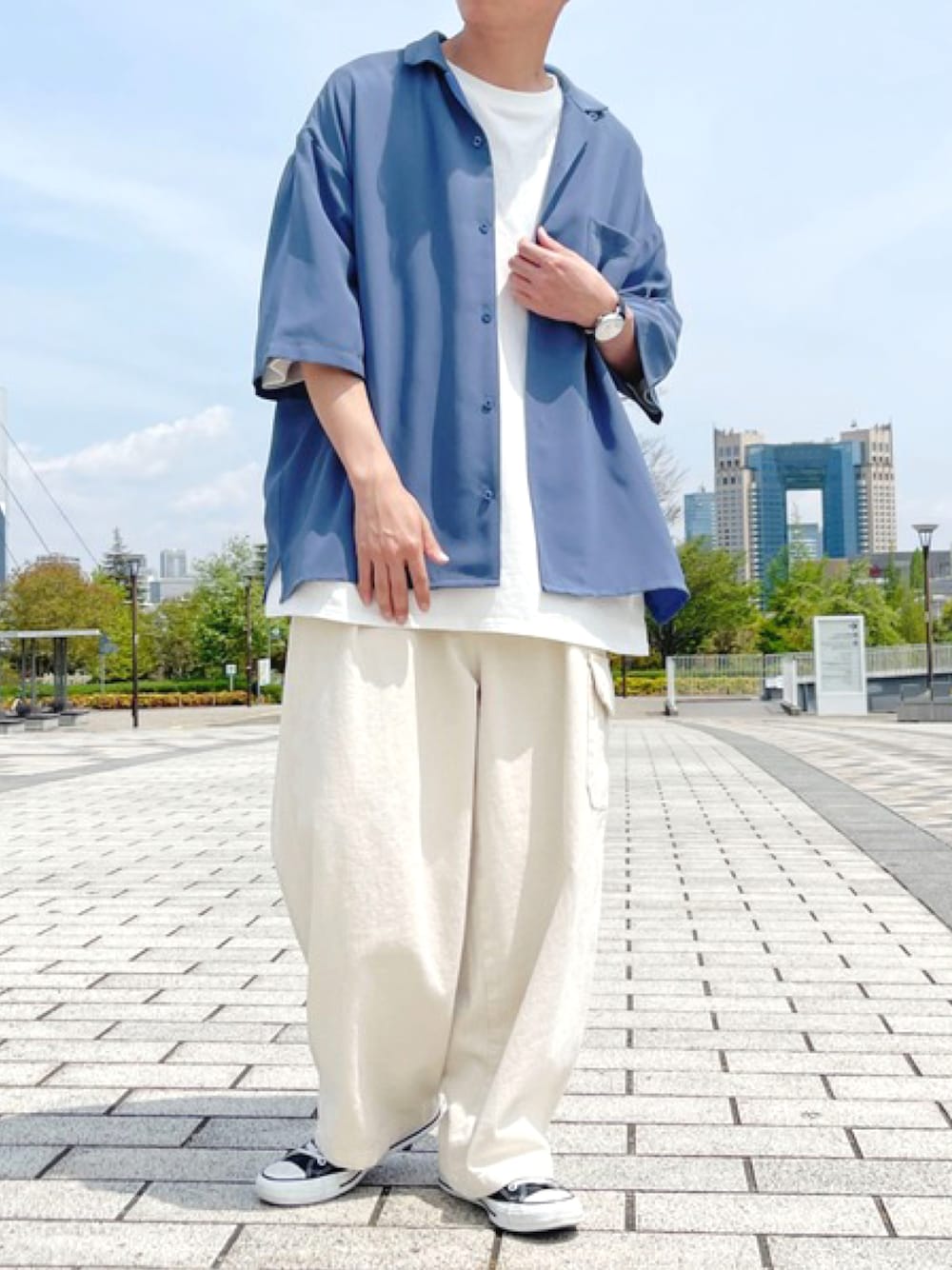 ご覧くださりありがとうございます‼️ BASICオープンカラーシャツを使ったコーデです❗️