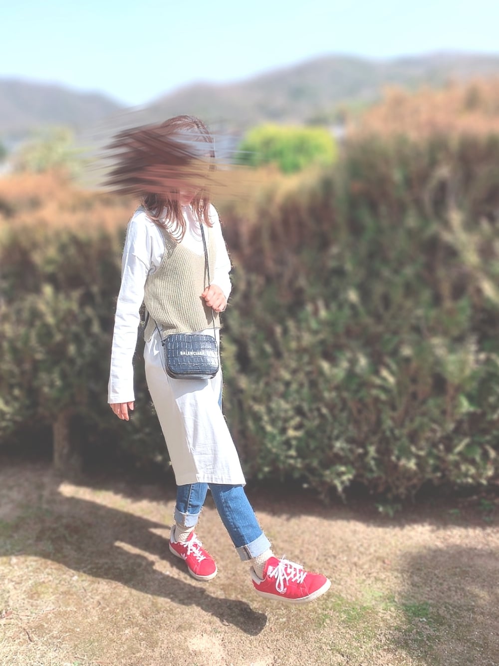 春日和〜 ぽかぽか暖かくてキモチイイですね。☀️ ピスタチオカラーのビスチェお気に入りです!