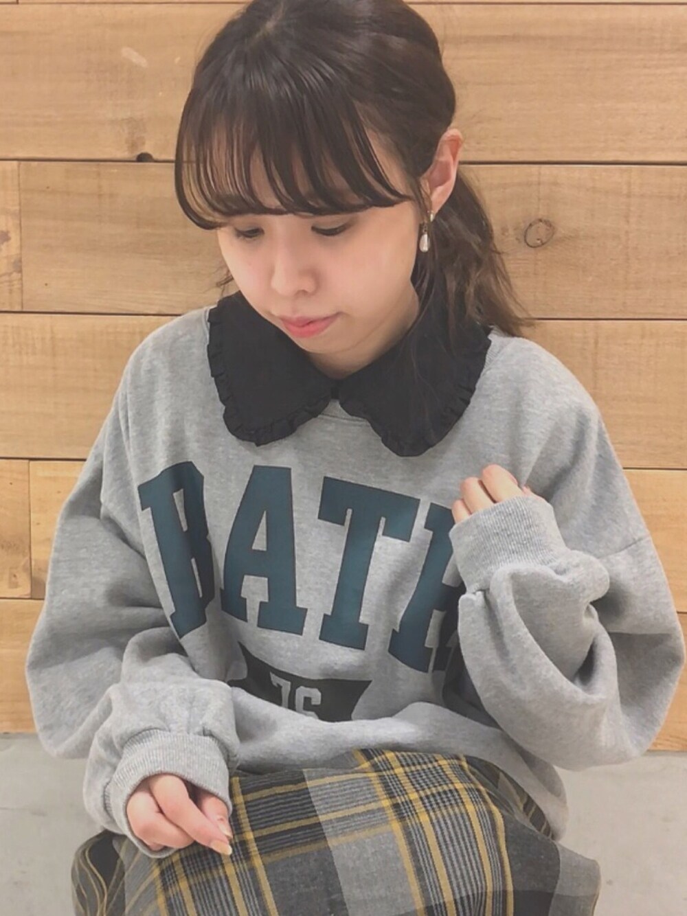 9月 BIGカラーシャツ スウェットから襟だけ出して 女の子らしく👧