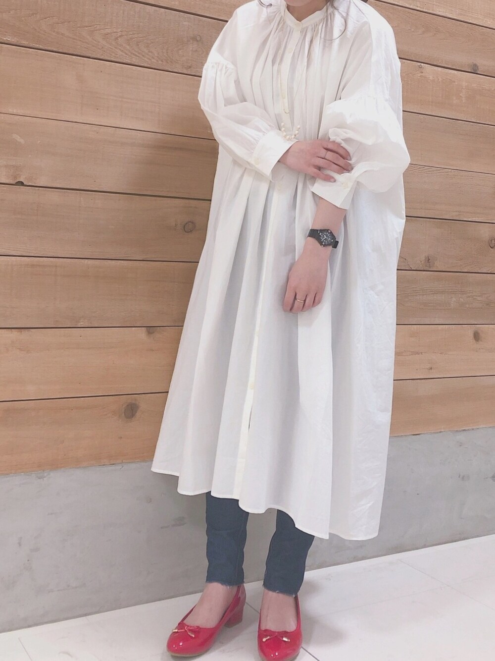 3月 オーガニックブレンドシャツワンピ 羽織りとしても🙆♀️ エナメルパンプスが映える🎈