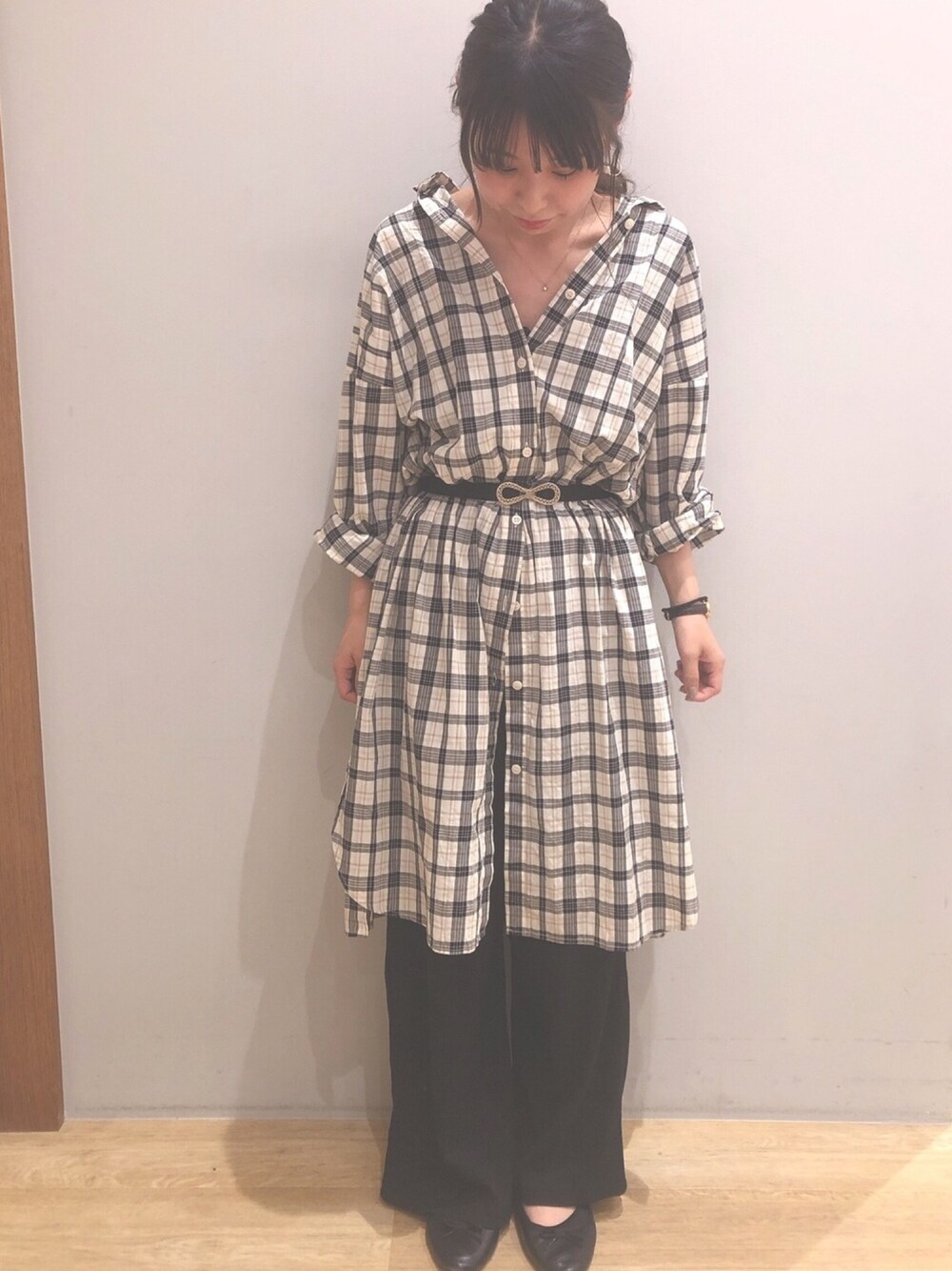 10月 シャツワンピ×太めのパンツ バランスはベルトで保って 程よい肌見せも🙃