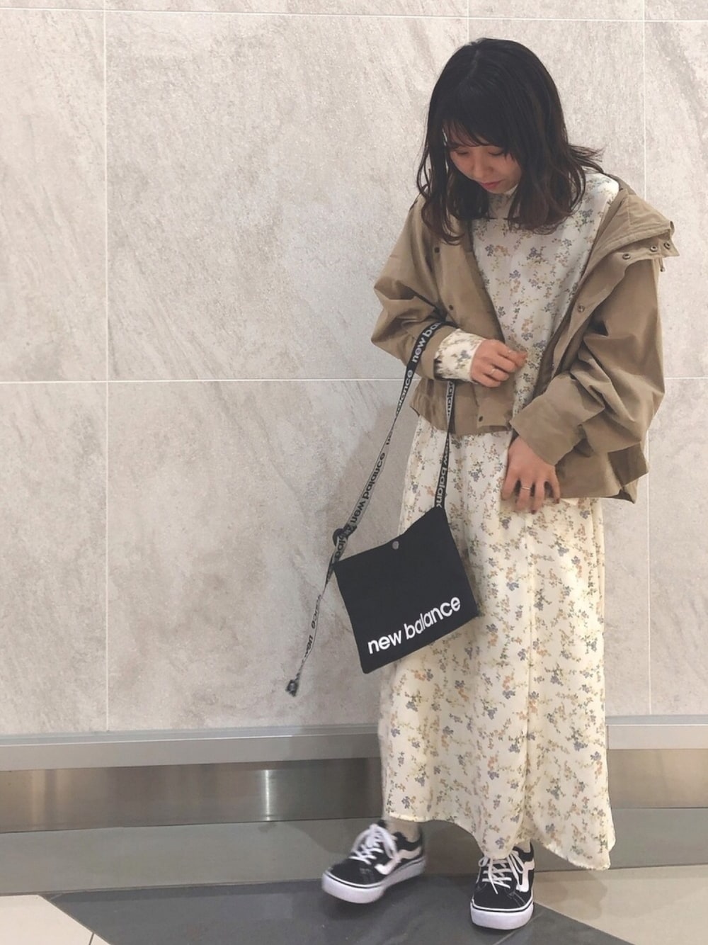 3月 ご覧頂きありがとうございます😊 マウンテンパーカーとサコッシュで ワンピースをカジュアルダウン🌿