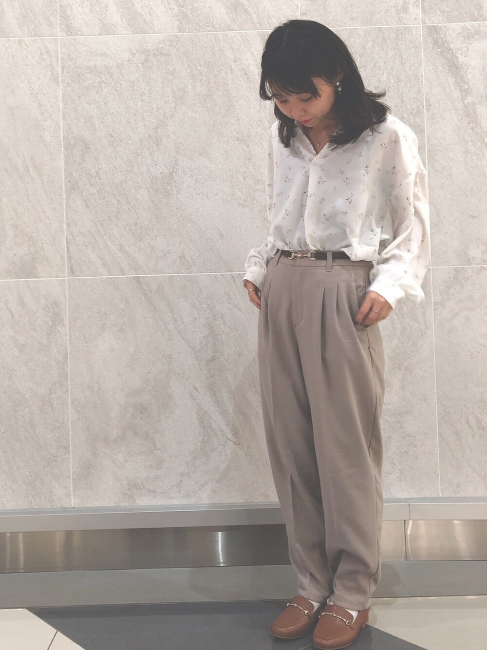 【3月】 ご覧頂きありがとうございます☀️ ブラウスキレイめコーデ 体型カバーしつつキレイに見えるシルエットなパンツは着回し◎ と花柄ブラウスで春らしく💭