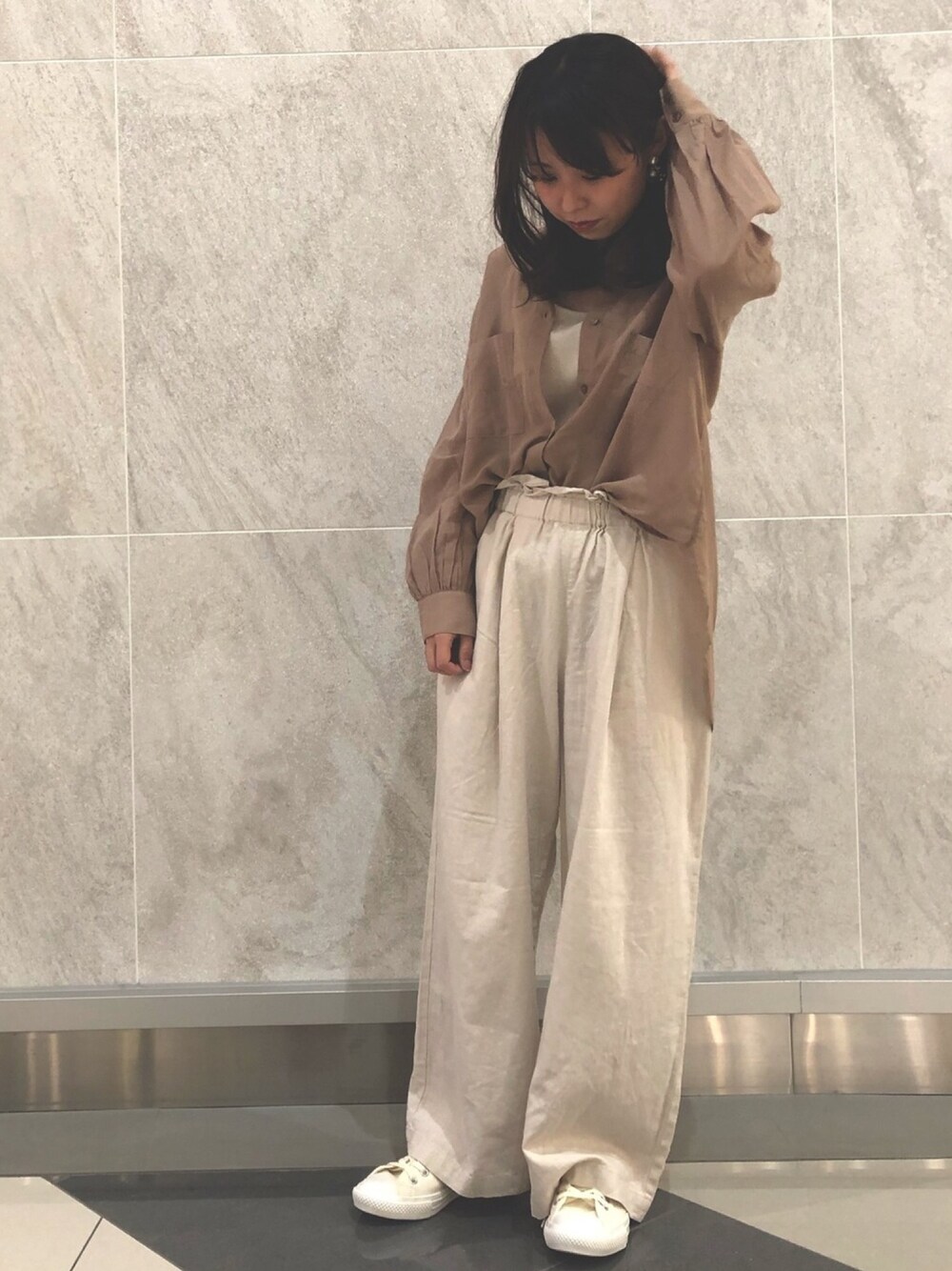 【4月】 ご覧頂きありがとうございます◎ リネンワイドパンツは夏まで使える便利アイテム!ベージュで合わせたコーデです🌿