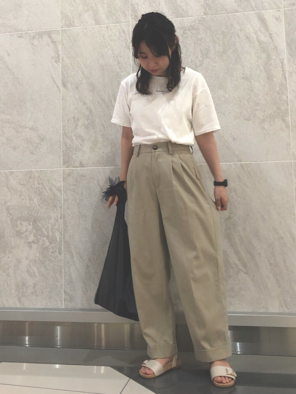ご覧頂きありがとうございます💭 ロゴTときれい目パンツのバランスコーデ🌈エコバッグはシースルー🚰