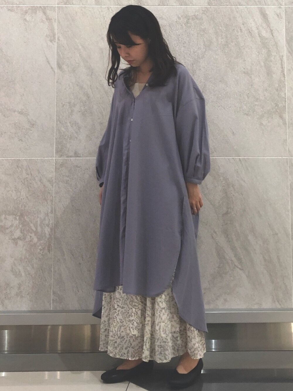 くすみラベンダーのレイヤードシャツワンピコーデ🤍