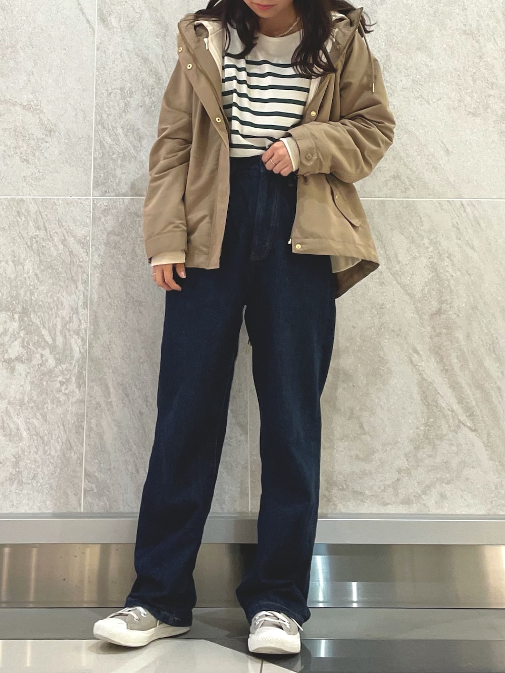 ご覧いただきありがとうございます◎ マウンテンパーカーのカジュアルコーデです🌿 パネルボーダーは普通のボーダーとはまた一味違うこなれ感がでます🦔