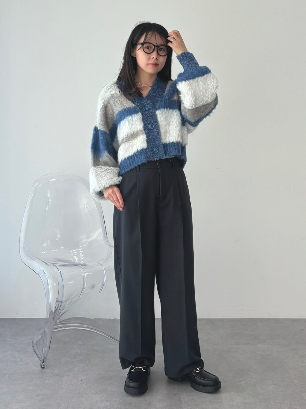 MIKA◎のカーディガン/ボレロ「フェザーミックスインターシャカーディガン」を使ったコーディネート