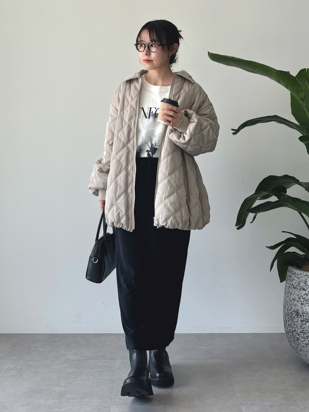 ご覧いただきありがとうございます🍂 WEB限定のダブルステッチキルティングコートできれいめカジュアルコーデです◎ 身幅もゆったりしていて中に厚手のアイテムも着やすいデザインです♪