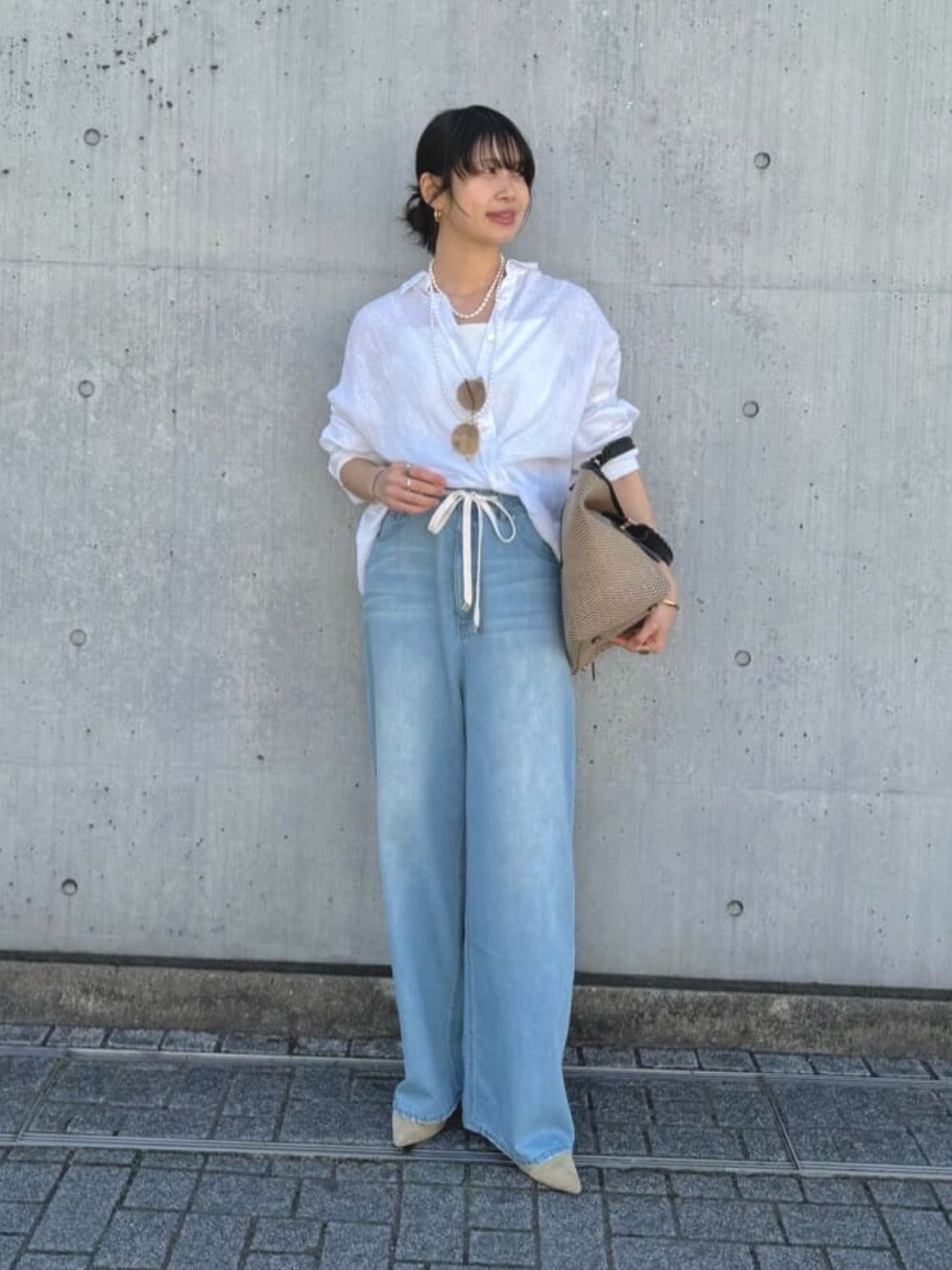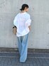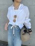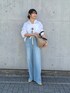 定番で使いやすいリネンシャツのホワイト。 ゆったりとしたサイズ感ですがボトムスインもしやすいアイテムです。 デニムは38サイズ着用。ウエストはゆとりがあり腰まで落ちてしまう為、ドロスト紐をぎゅっと絞って履いています。 それでも着丈は長く、ヒールを履いています。 同じような体型の方は36サイズで問題無いかなと感じました。 生地が比較的薄手でとても柔らかく、春夏に最適な素材感です!