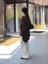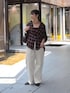 トロンと落ち間のあるシルエットで女性らしく着れます。 パンツは38サイズ着用。 ウエストゴムで楽ちんな履き心地です。