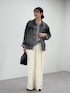 キレイめカジュアルなモノトーンコーデ ニットとスラックスでキレイめにまとめて、デニムジャケットを羽織ることで大人カジュアルに。