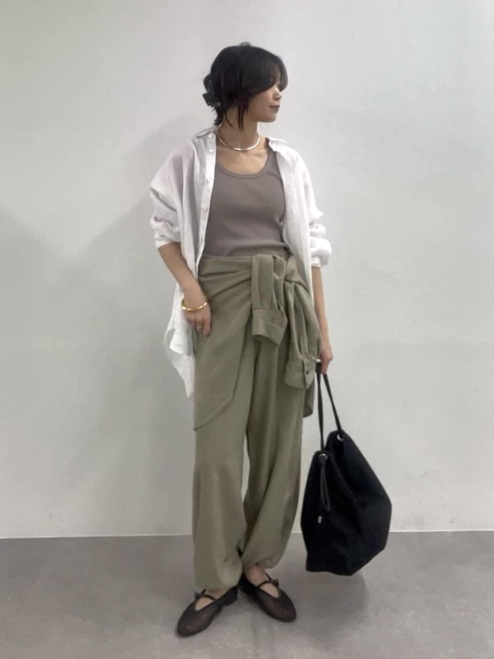 サラッと快適で夏まで長く活躍してくれるアイテムたち。 パンツは裾を絞って履くのもおすすめです。