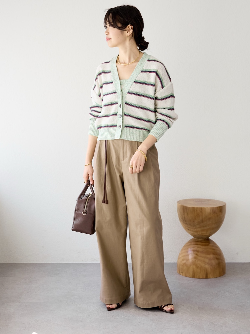 爽やかな配色が可愛いボーダーカーディガン。 大人な素材感、配色でチャレンジしやすいボーダーアイテムです。