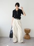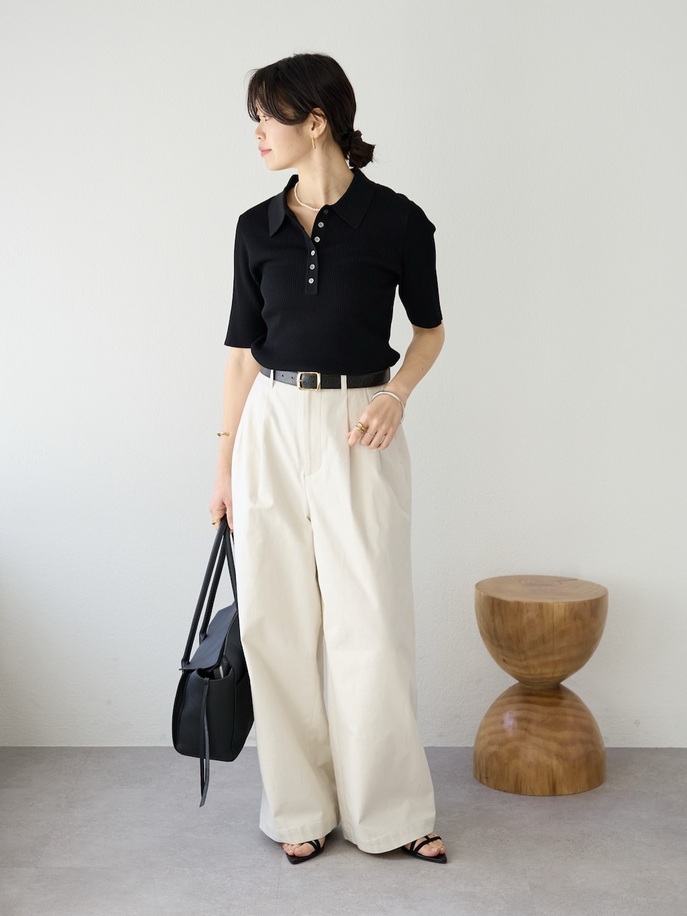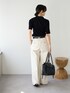 キレイめなシルエットのポロニットとチノパンを合わせることで、カジュアルになりすぎず女性らしいキレイめカジュアルコーデに。
