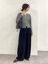 モノトーンのお仕事もOKなコーデ 短丈トップスでスタイルアップ効果抜群です。