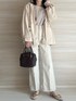 . ワントーンコーデ🤍 パキッとした色味も好きやけど、 こーゆう消えそうで同じ色味やけどちょっとずつ違う絶妙な色合いが好み🤤 kastaneのアウターはスウェード生地で手触りもいいです☺️◎