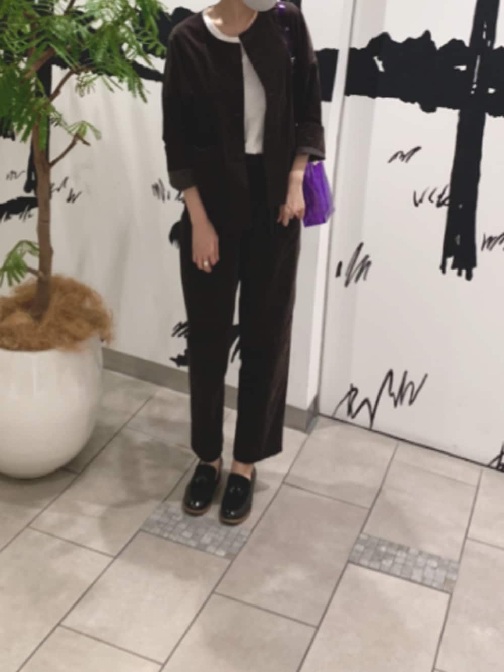 okepiのノーカラージャケット「【LE GLAZIK】コーデュロイ シャツジャケット WOMEN」を使ったコーディネート