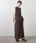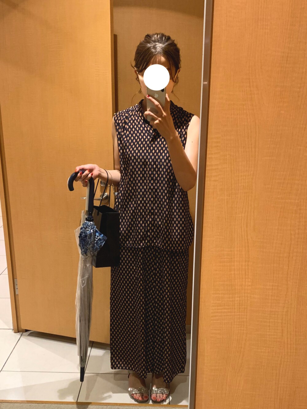 okepiのシャツ/ブラウス「UBC P プリント ギャザー ノースリーブ ブラウス」を使ったコーディネート