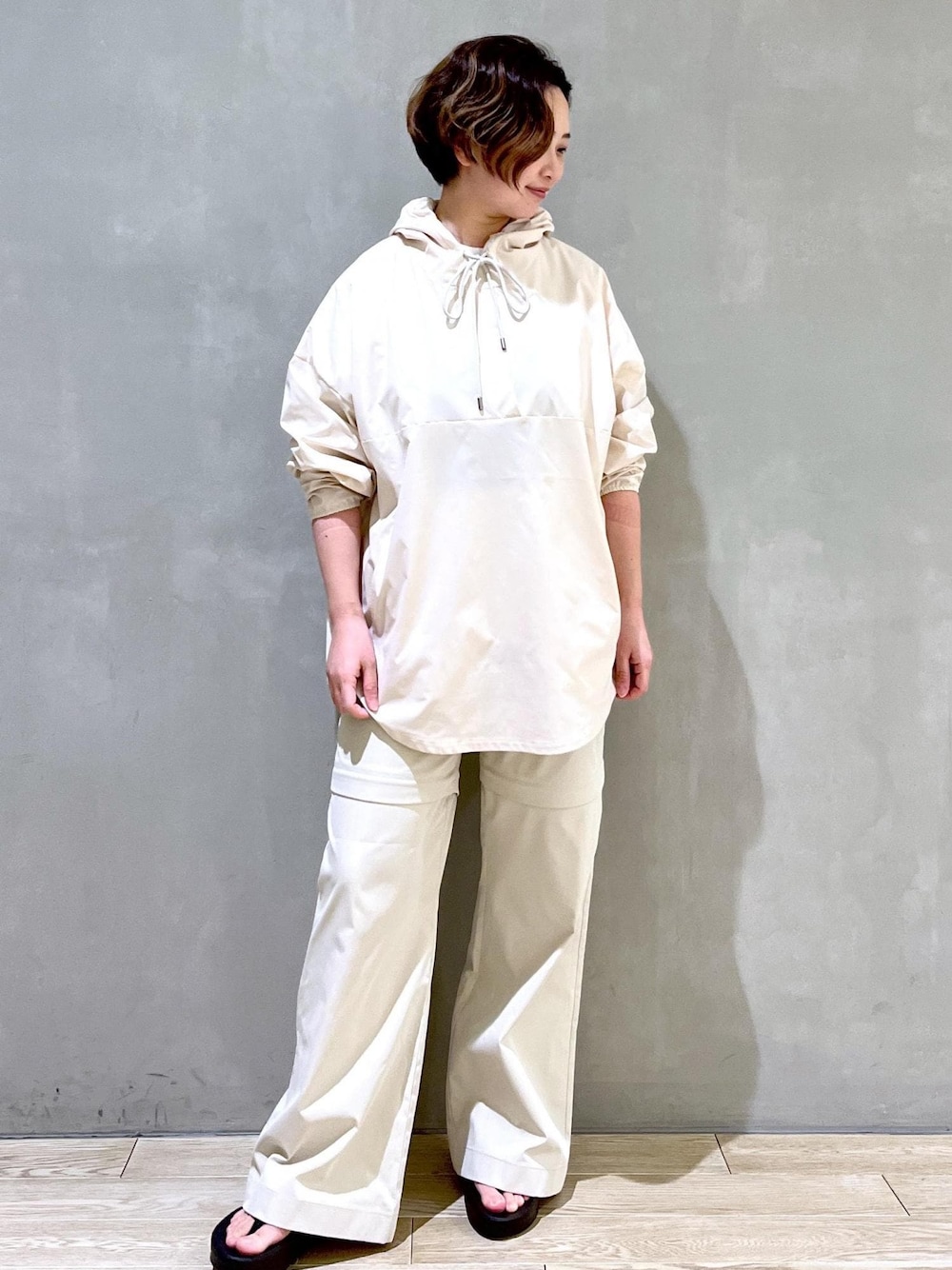 takeda(ADAM ET ROPE' 心斎橋PARCO)のパーカー「【水陸両用&吸水速乾&UV】ラッシュガードフーディ」を使ったコーディネート