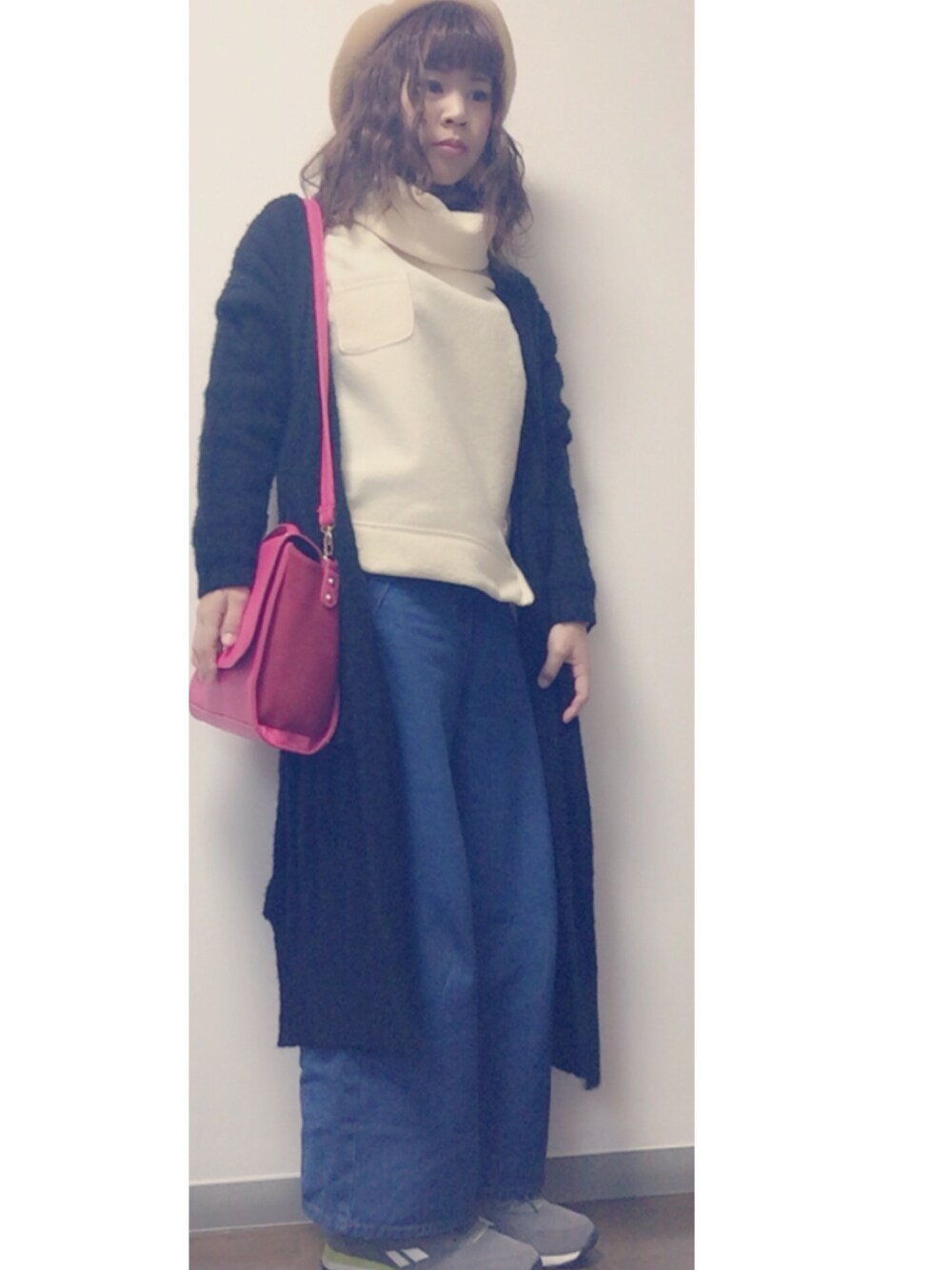 今日は寒いですね😨 風邪ひかないようにしてくださいね💕 今日はオフタートルのプルオーバーにデニムのワイドパンツはいてみました😊 靴はスニーカーにしてヘアアレンジでは ゆる巻きのベレー帽でまとめてみました😊💓 よかったらみてください💗