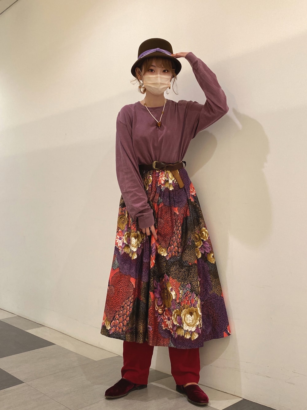 丈が短いスカートはパンツと合わせて はいちゃいましょう〜♡ ここまで派手な柄物も 他をシンプルにまとめれば 主張しすぎないです〜