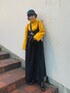 Instagram @pan_812_panda こないだの休日🖤 毎年欲しかったイエローのニット やっと今年はいいのに出会えた🫶🏻 かなりゆったりしたスタイルなので ブーツで締めました👢