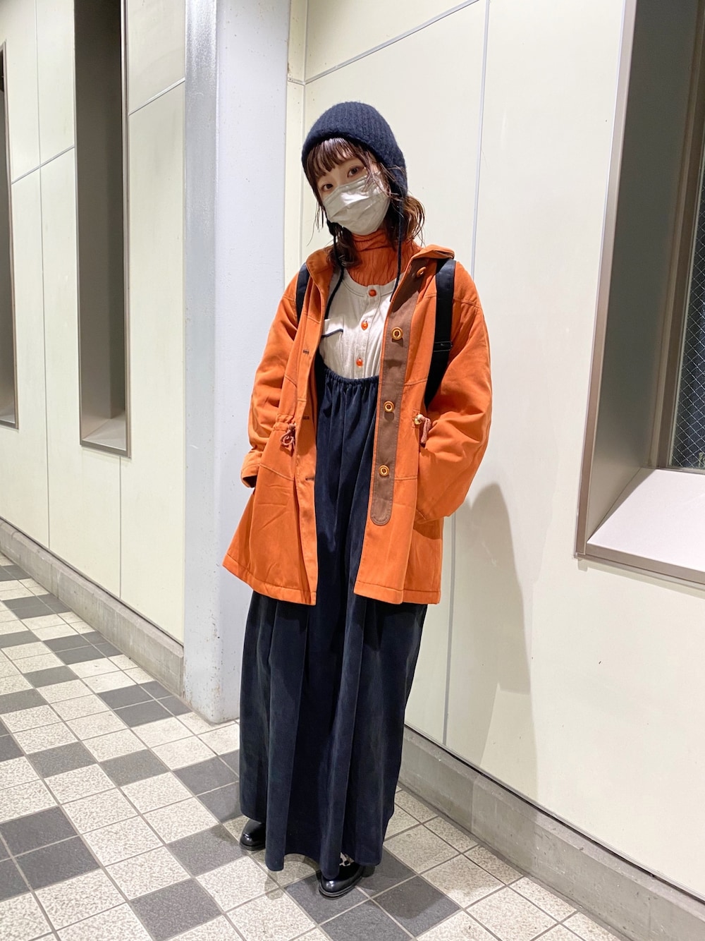Instagram @pan_812_panda オレンジとブラックの組み合わせって コントラストがおしゃれですよね🍊 暖かくてお気に入りの ニットは耳当ての部分をうえで むすんでも可愛いですよ🫰🏻 タグがついていないものは 全て古着になります🙇♂️