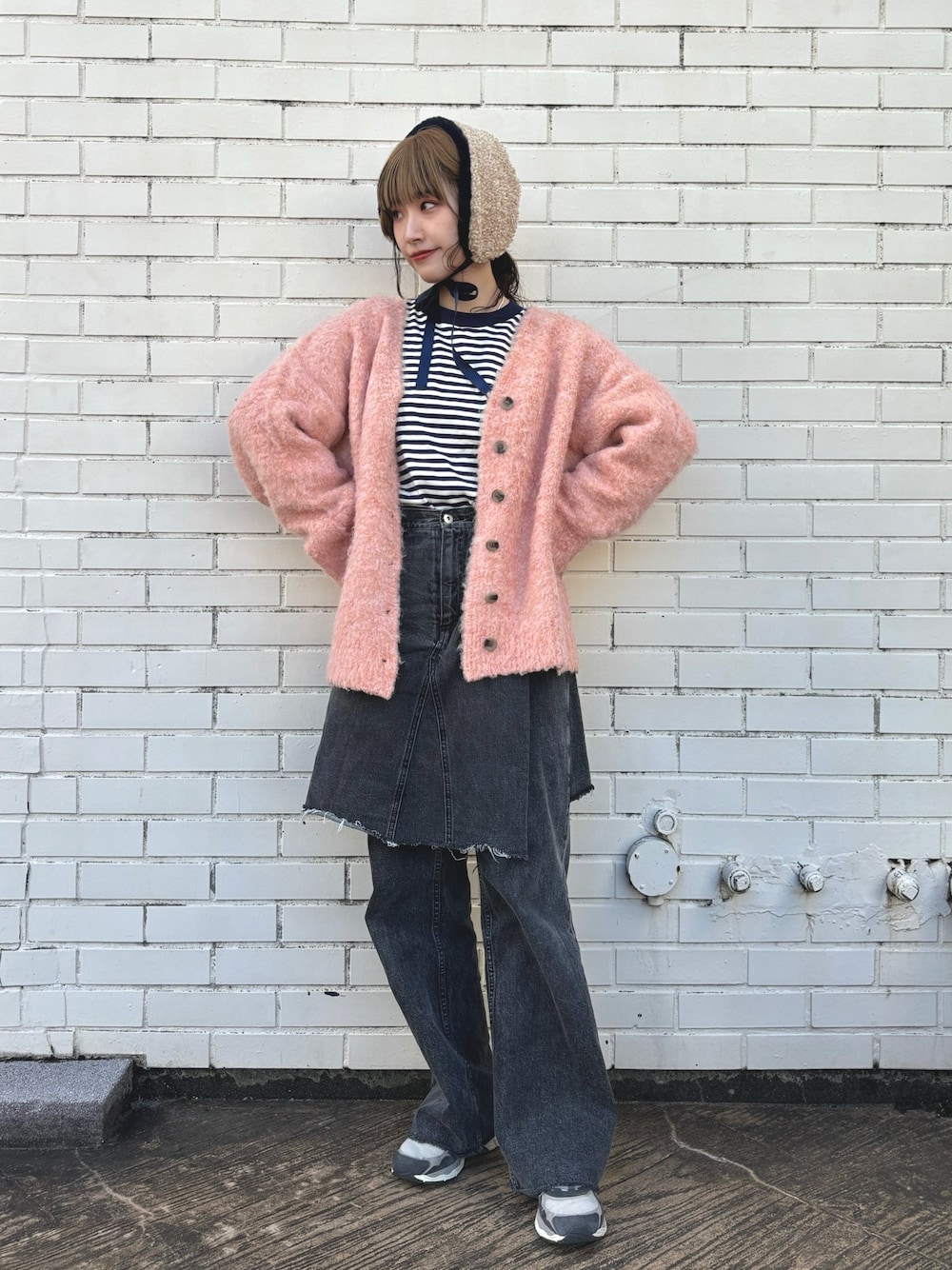 Instagram @pan_812_panda お気に入りニット🧶 ちょっと風が冷たい日の 羽織にあたたかくてちょうどよい! オレンジ混じりのピンクで イエベの私にピッタリ😙 限定のヘアバンドと 可愛く合わせてみたよ🐣
