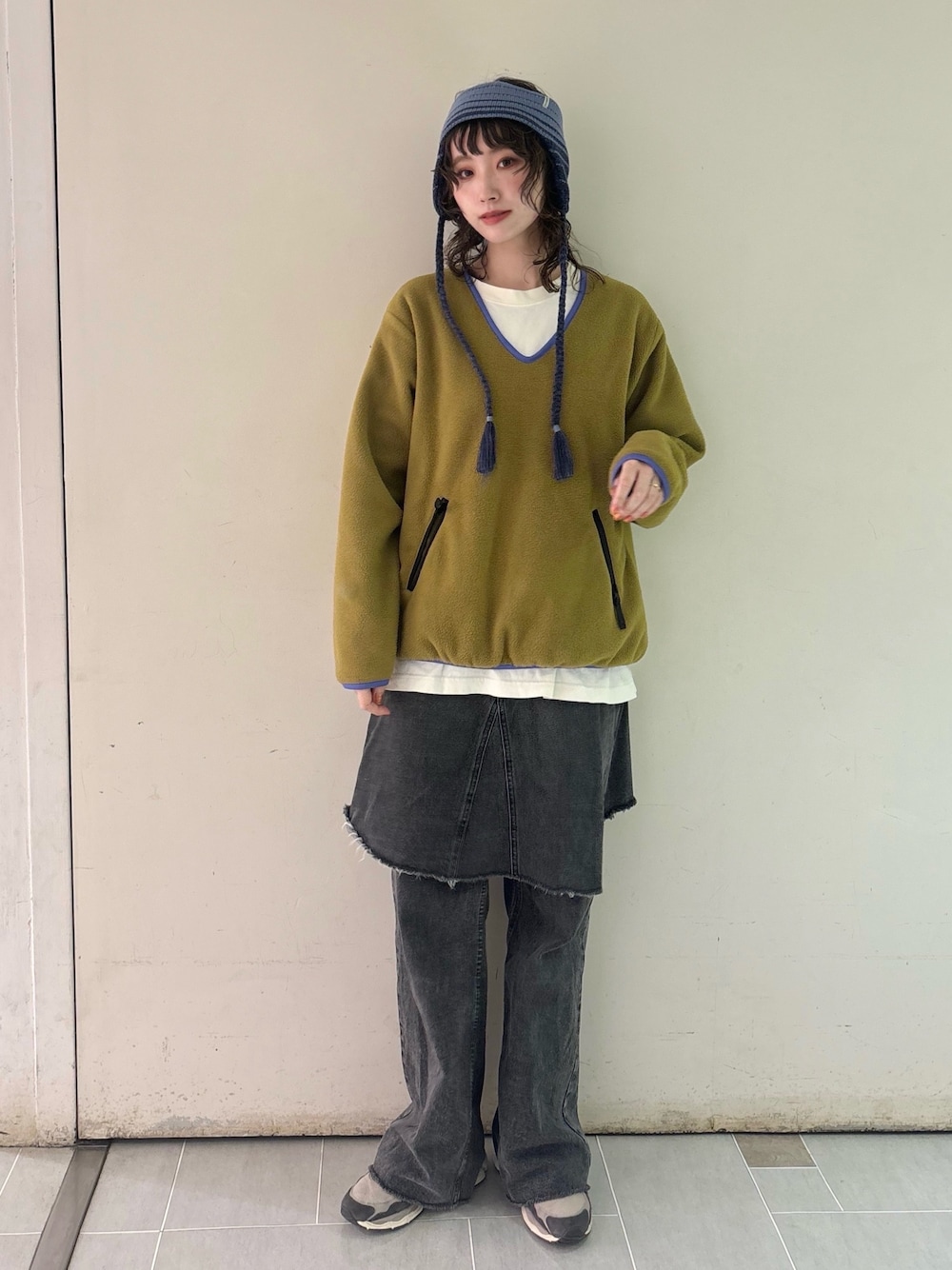 Instagram @pan_812_panda トップスのパイピングに合わせて ヘアバンドはブルーをチョイス🫐 癖ありの個性派アイテムです✌🏻 キャップの上からレイヤードして つけても可愛いヘアバンド🧢 リバーシブルでも使えちゃいます〜