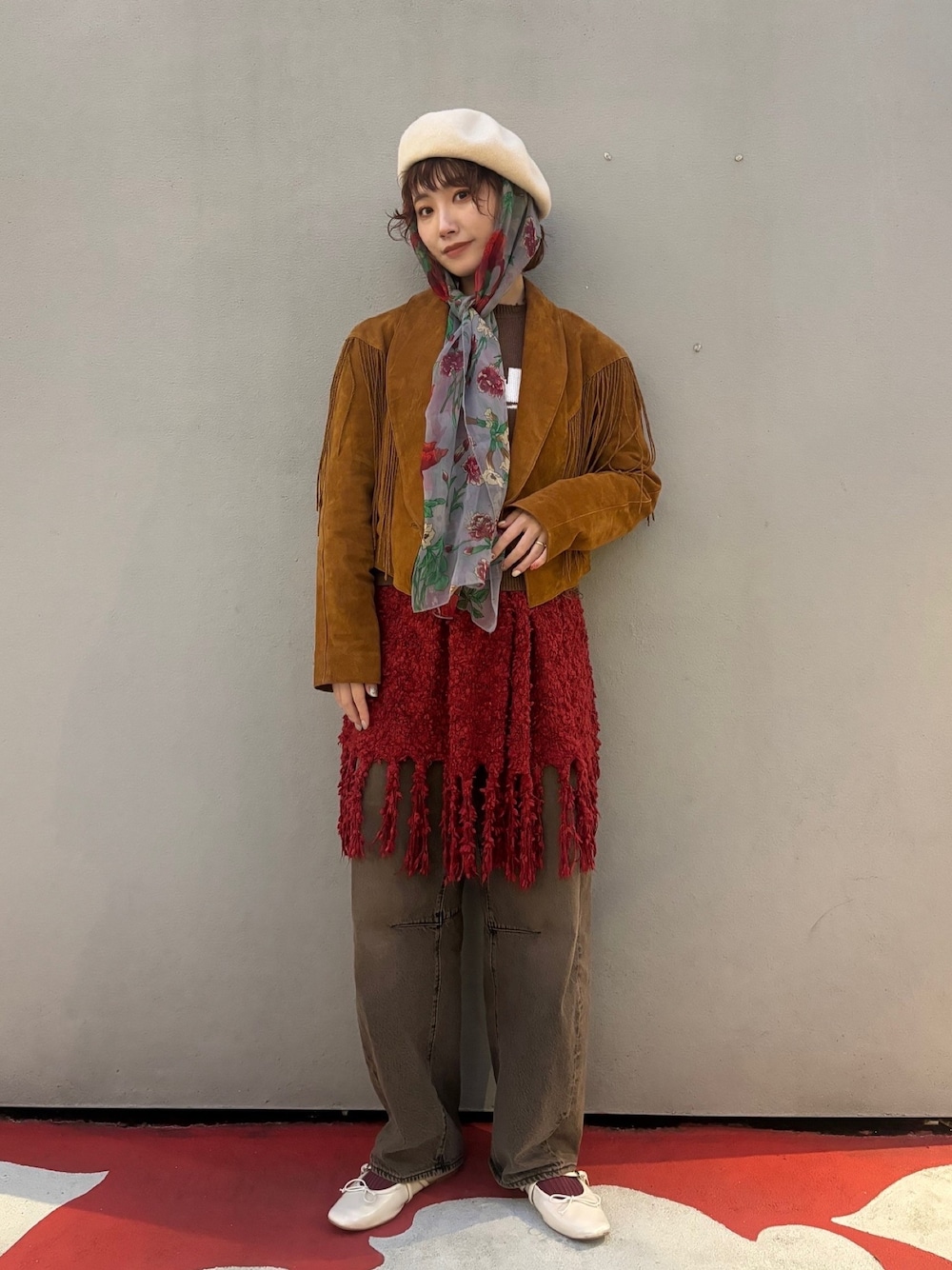 Instagram @pan_812 ホワイトの小物でまとめた 古着MIXコーデ⛄️ ベレー帽は59cmをチョイスし スカーフをレイヤードしました✌🏻