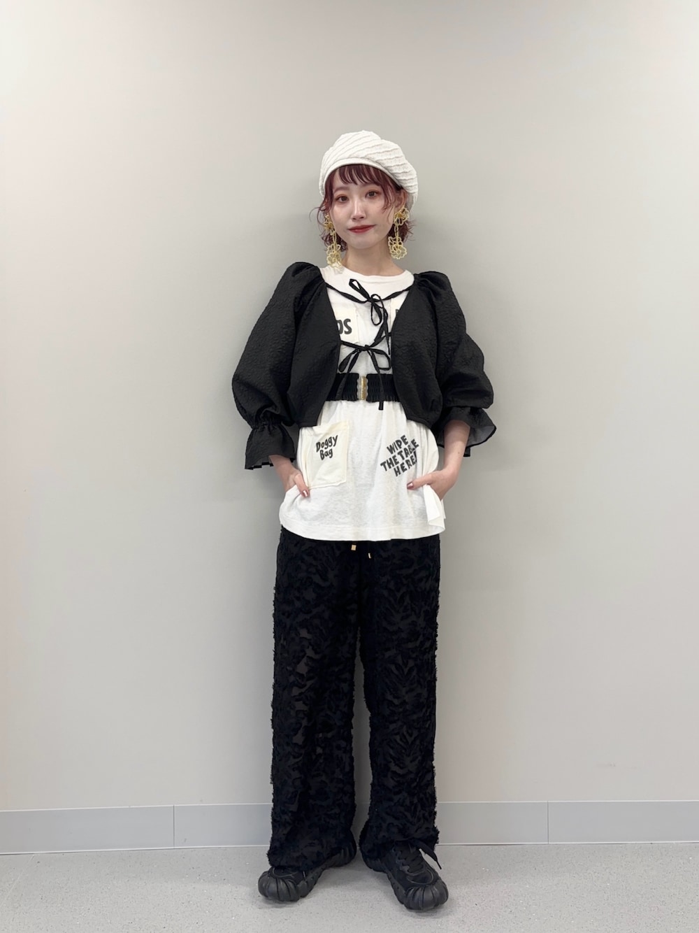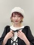 カオリでは定番の腰のあるベレー! 形が作りやすくペタッとしないのが 嬉しいポイント♡ くしゅくしゅと素材がガーリーなので コーディネートはモノトーンでまとめて バランスをとりました✌