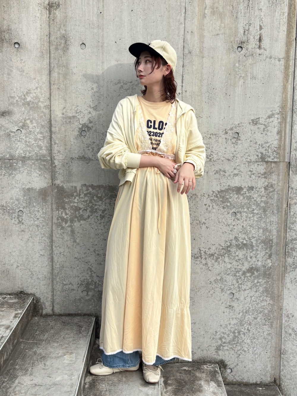 ワンピースにパーカーでゆったり🦦 古着のワンピースがお気に入りです。◯ Instagram@pan_812_