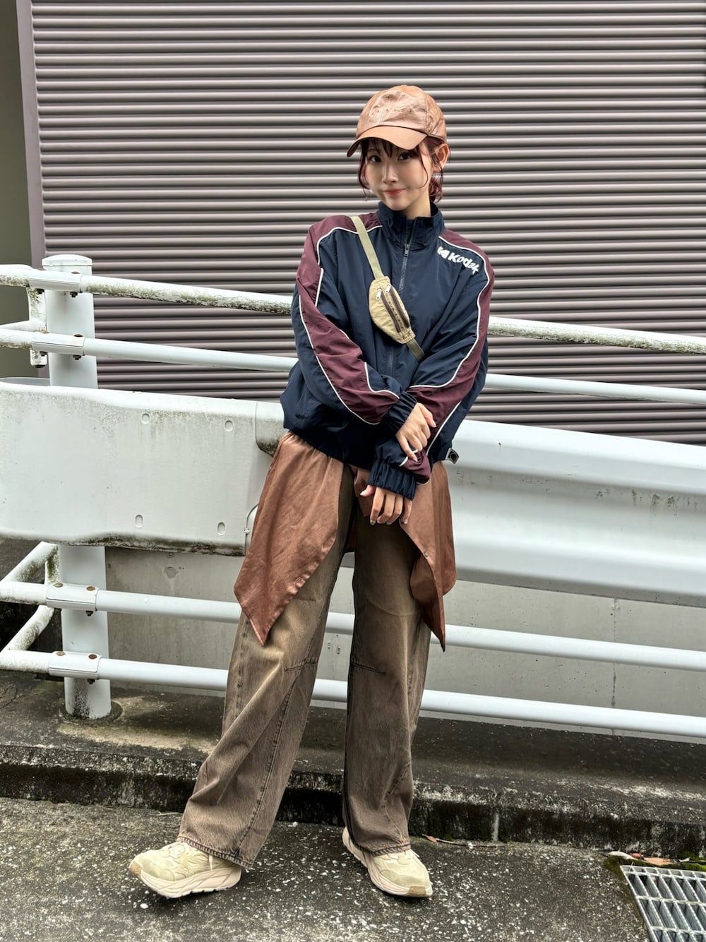 タイトル通り、私の中の ちょいとそこまでコーデです。笑 腰に巻いてるシャツは羽織ることは ないアイテムなんですが キャップに合わせてブラウンを 入れたくて巻いてみました。 H&M ✖️ Kodak📸の トラックジャケット 色味がドンピシャすぎて即買いでした✌︎ サイズはSです!ご参考までに〜 (丈は長めだけどゴム入ってるのであげてます)
