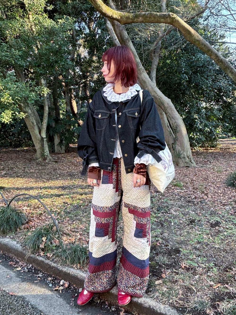 panのデニムジャケット「袖口リボンデニムジャケット/fint フィント」を使ったコーディネート