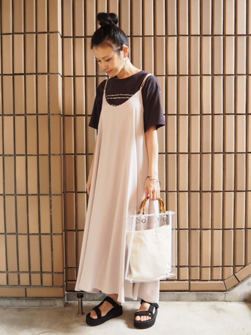 モノトーンコーデ。 メッセージロゴが胸元からちらりと見えるのがポイントです🐒 肩紐がリボンになっているのに、リボン部分が見えてなーい😂 instagram ⏩@panana