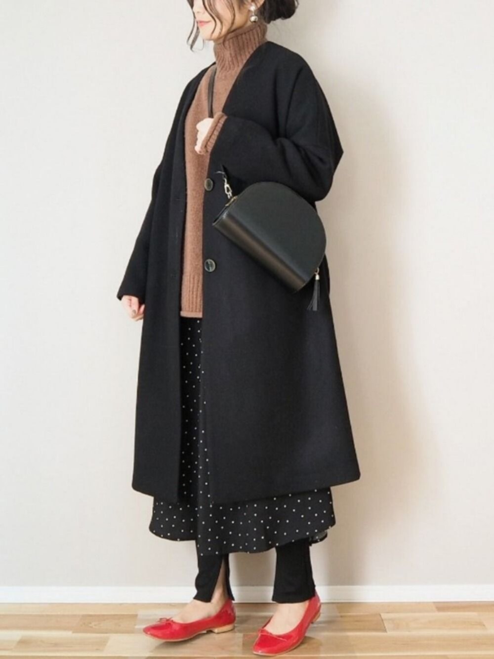 ドットワンピにニットを重ねました。 狙っていたZARAのコート、無事に買えました😛💕 instagram ☞ panawear77