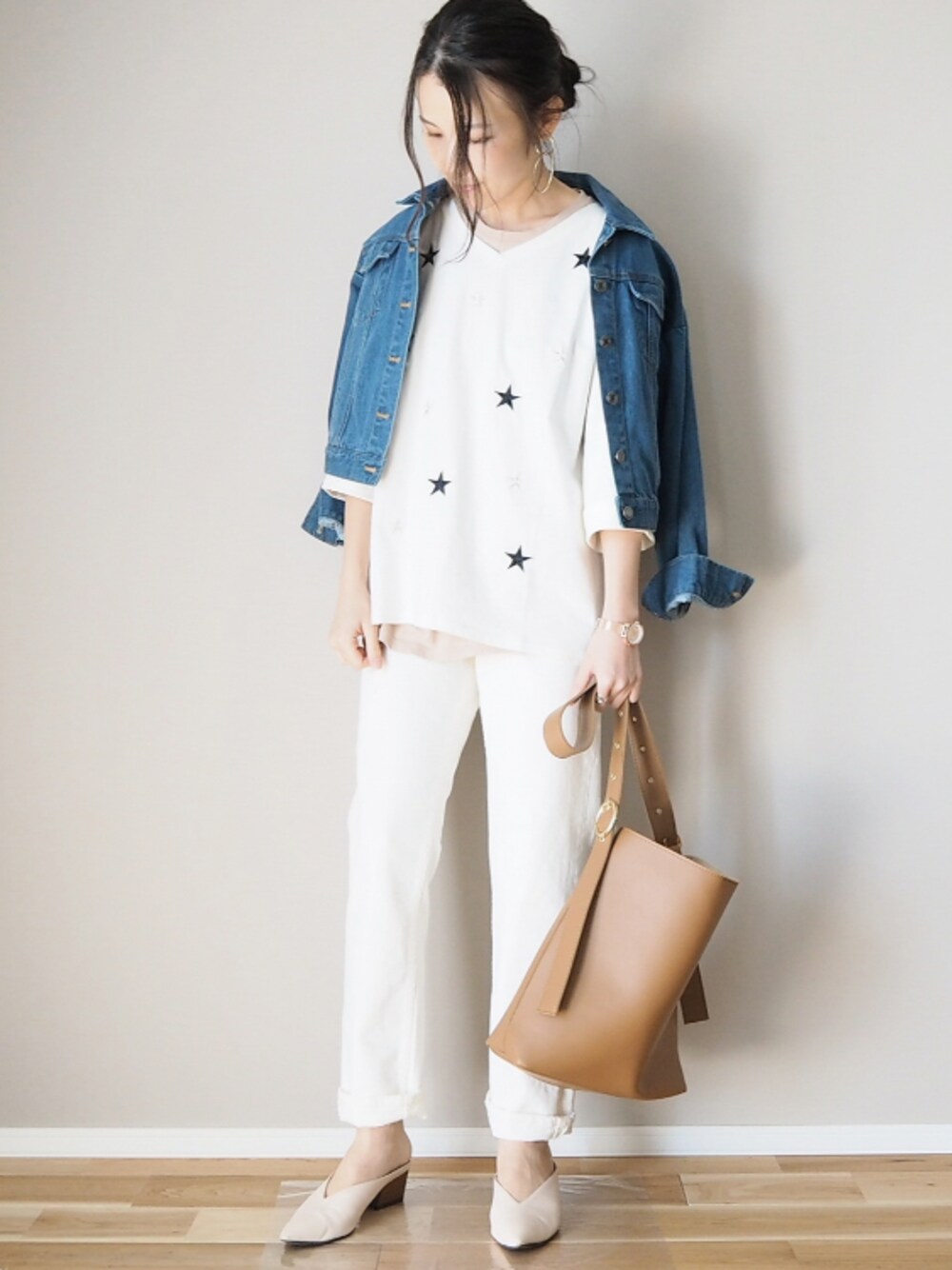 LIPSTARさんの星柄カットソーで上下ワントーンにしてみました。 ベージュのtシャツでレイヤードがポイントです☆ #pr instagram ☞ panawear77