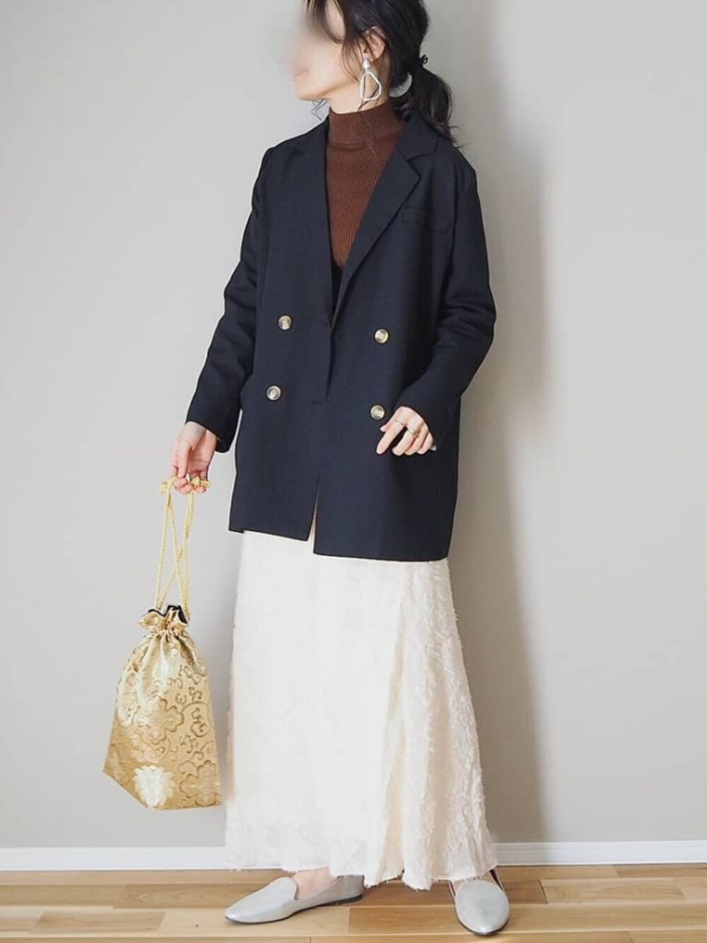 テーラードジャケットできれいめカジュアル。 ジャケットはCornersさん♪ かっちりしがちなジャケットコーデはニットとスカートで女性らしさを出しました☺︎ Auntmarie'sさんのスカートとチャイナバッグが今年っぽくしてくれる! Cornersさんは、本日クーポン日です.+·.°* ぜひチェックしてみてください! instagram ⇒ panawear77