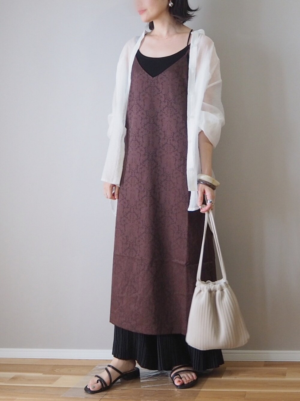 panaのワンピース「【UNFIELD ジャガードサテンキャミワンピース】」を使ったコーディネート