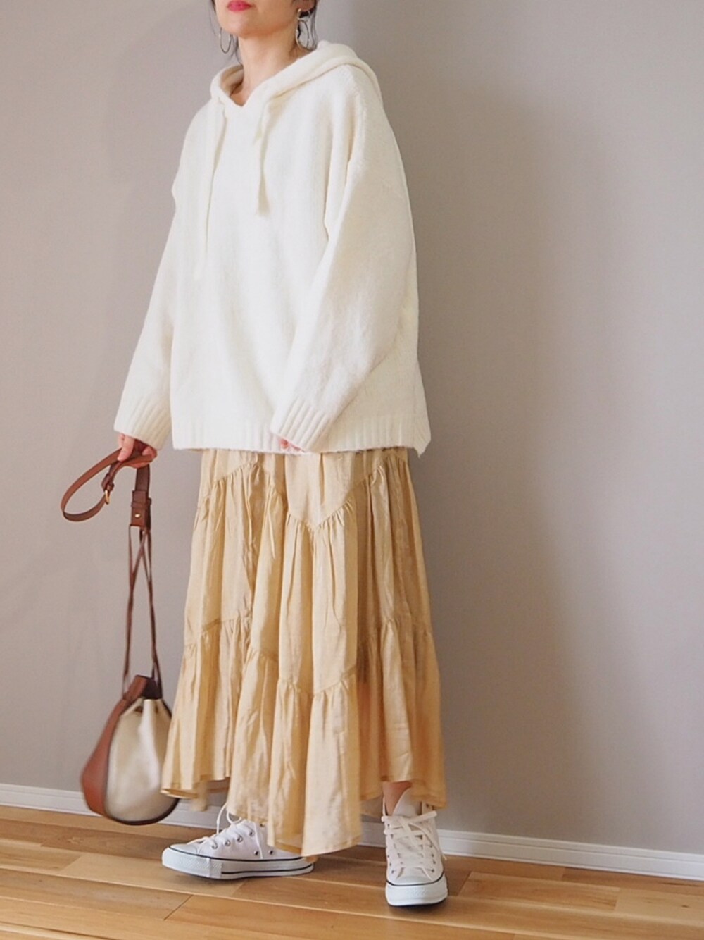 panaのニット/セーター「【インフルエンサーKRさん×CORNERSコラボ】もちもちオーバーサイズニットフーディプルオーバー」を使ったコーディネート