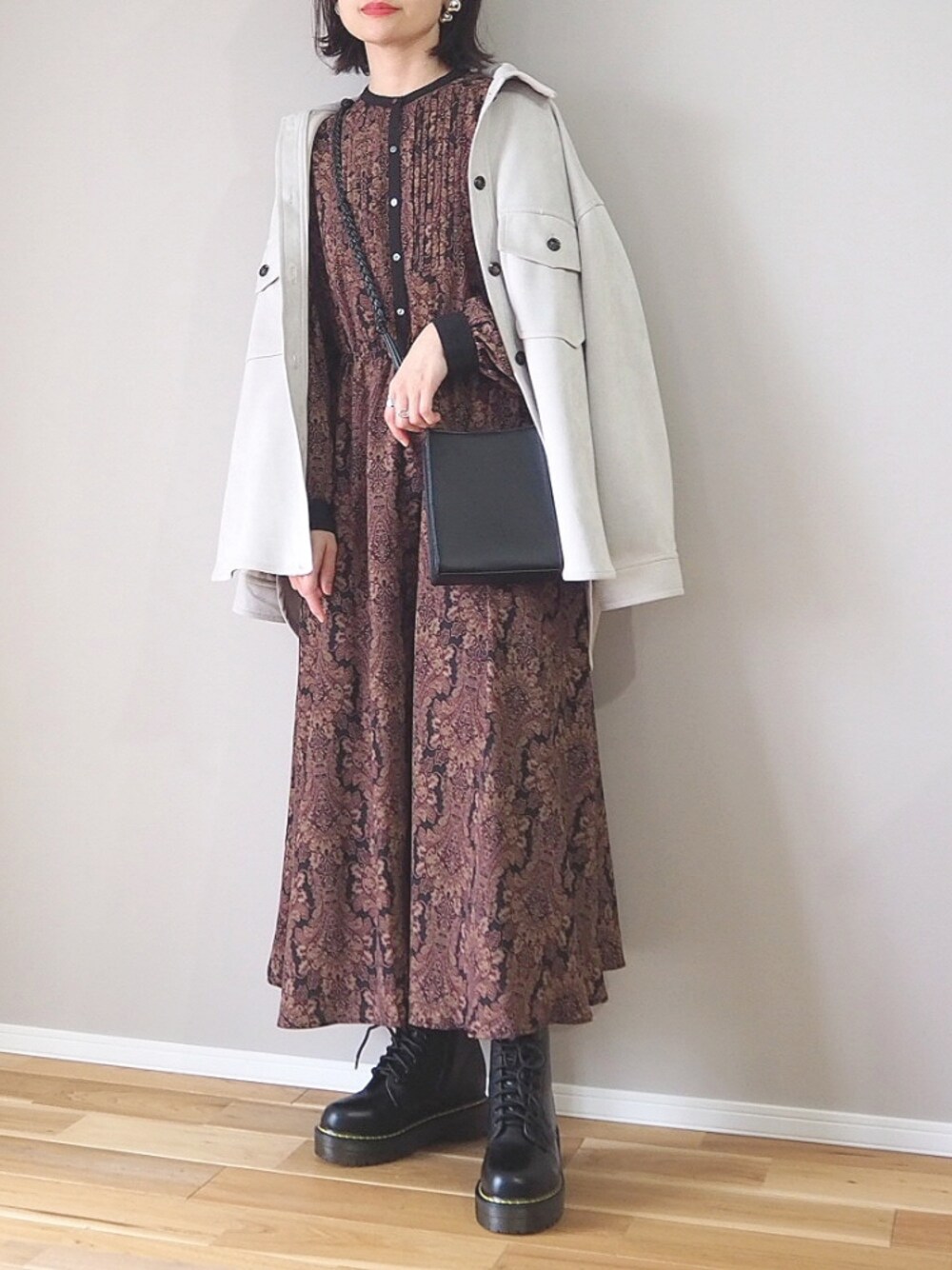 panaのワンピース「ダマスクプリントワンピース」を使ったコーディネート
