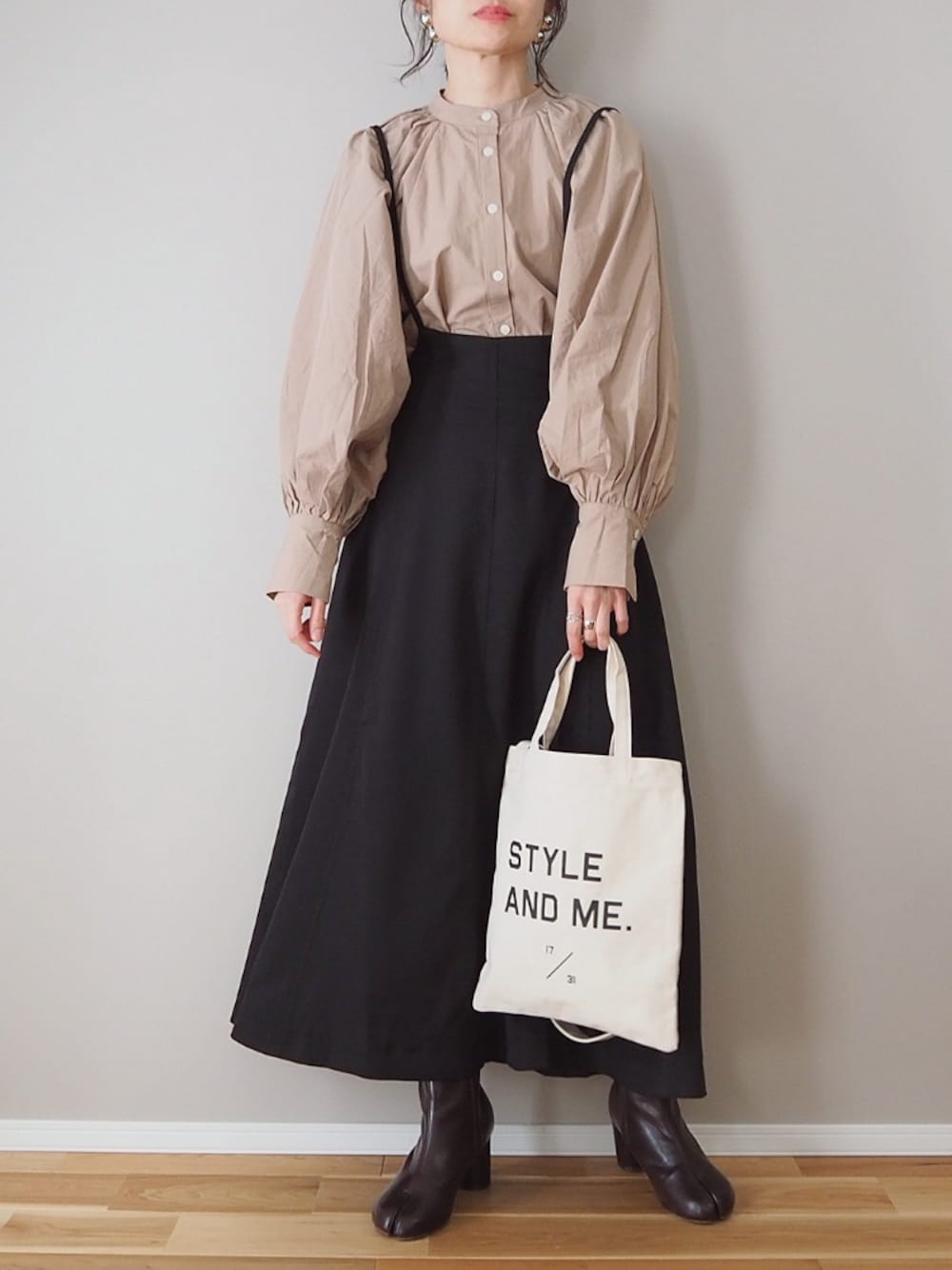 panaのシャツ/ブラウス「タイプライターレギュラーカラー無地袖ボリュームブラウス」を使ったコーディネート
